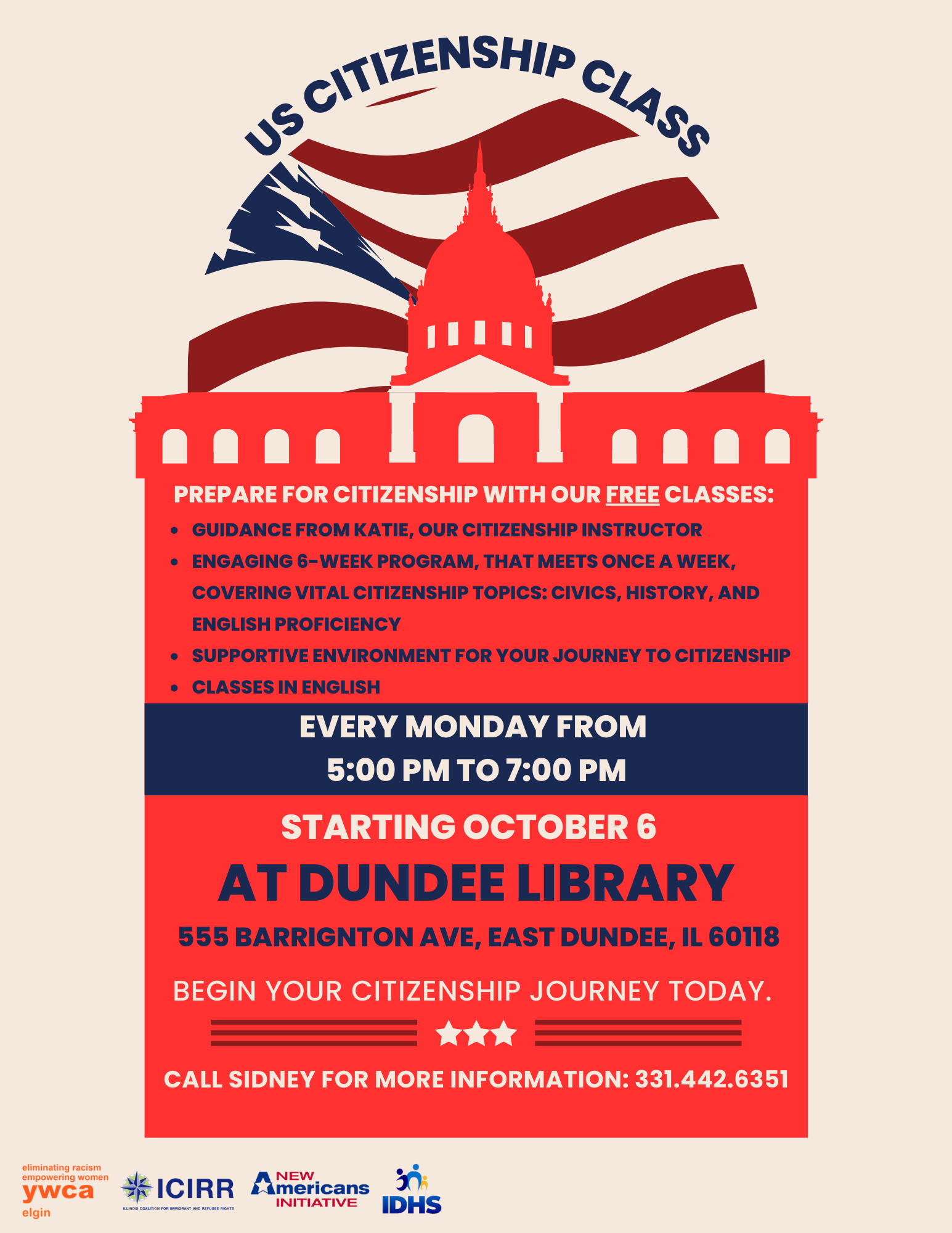 Ready to take the next step toward U.S. citizenship? Join our free 6-week citizenship class at YWCA Elgin. This class will be held in Spanish.
